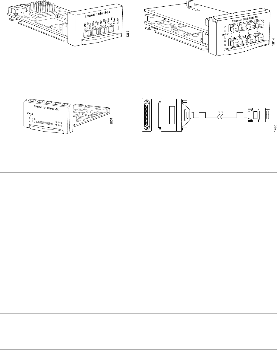 Left: 12-Port Fast Ethernet PIC; Right: VHDCI to RJ-21 cable