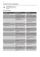 Problem Prawdopodobna przyczy‐ na Rozwiązanie Urządzenie pracuje głośno. Urządzenie nie stoi stabilnie. Sprawdzić, czy urządzenie jest wypoziomowane. Nie działa oświetlenie. Oświetlenie jest w trybie czuwania. Zamknąć i otworzyć drzwi. Żarówka jest przepalona. Patrz „Wymiana żarówki”. Nie ustawiono prawidłowo temperatury. Patrz rozdział „Eksploatac‐ ja”. W urządzeniu umieszczono naraz dużą ilość żywności do zamrożenia. Odczekać kilka godzin i po‐ nownie sprawdzić tempera‐ turę.