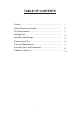 TABLE OF CONTENTS Caution ………………………………………………………. 1 Heater Stand and Location ………………………………… 2 Gas Requirements ………………………………………….. 2 Leakage Test ………………………………………………… 2 Operation and Storage ……………………………………... 3 Cleaning and Care ………………………………………….. 4 Parts and Specifications ..………………………………….. 4 Assembly Parts and Procedures ………………………….. 6 Problems Check List ………………………………………...