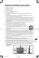 Important Safety Instructions 1) 2) 3) 4) 5) 6) 7) 8) 9) 10) 11) 12) 13) 14) 15) 16) 17) 19) 7 7/8 in 7 7/8 in 150 mm 5 7/8 in English 18) Read these instructions. Keep these instructions. Heed all warnings. Follow all instructions. Do not use this apparatus near water. Clean only with dry cloth. Do not block any ventilation openings. Install in accordance with the manufacturer's instructions.