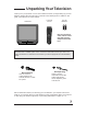Table of Contents UNPACKING YOUR TV . . . . . 7 TV MODELS and REMOTES GUIDE . . . . . . . . . . . . . 8 QUICK SETUP GUIDE . . . . . 10 CONNECTIONS . . . . . . . . 13 Cable and VCR Connections . . . . . Stereo VCR/DVD Connections . . . . Connecting to an External Amplifier . Connecting to a Camcorder . . . . . Headphone or Earphone Connection . . . . . . . . . . . 13 15 15 16 16 REMOTE CONTROL . . . . . . 17 Remote Control Basics. . . . . 17 Changing the Batteries. . . . . 17 ONSCREEN MENUS . . . . . .