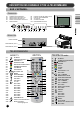 DESCRIPTION DES PANNEAUX ET DE LA TELECOMMANDE SUR L'APPAREIL Panneau avant B1 B2 B3 B4 B5 B6 B7 B8 B9 B10 ALIMENTATION PRINCIPALE PANNEAU AVANT ENTREE S-VIDEO EXT-3 PANNEAU AVANT ENTREE VIDEO EXT-3 PANEAU AVANT ENTREE AUDIO EXT-3 PRISE CASQUE B1 B2 B3 B4 B5 B6 Indicateur STAND-BY (MODE DE VEILLE) Détecteur TELECOMMANDE AV TOUCHE VOLUME HAUT/BAS PROGRAMME HAUT/BAS B7 B8 B9 B10 Panneau arrière PRISE ANTENNE ANT EXT-1 EXT- 2 (S ) PRISE PERITEL (EXT-1) PRISE PERITEL (EXT-2) TELECOMMANDE MO