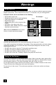 Table of Contents Important Safety Precautions . 2 Sound Adjust . . . . . . . . . 53 Warnings . . . . . . . . . . . . 6 Sound Settings . . . . . . . . . . . . . 53 Adjust Sound Settings . . . . . . . . . 53 MTS (Multi-channel Sound) . . . . . . . 53 Quick Setup . . . . . . . . . . . 8 Unpacking your TV . . . . . . . . . . . . 8 TV Models . . . . . . . . . . . . . . . . 9 TV Remote Control . . . . . . . . . . . 11 Getting Started . . . . . . . . . . . . . 12 The Remote Control . . . . . . . . . .