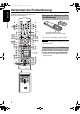 Verwenden der Fernbedienung Die Zahlen beziehen sich auf die Seiten, auf denen die Teile erläutert sind. Einlegen der Batterien in die Fernbedienung Einleitung Deutsch EX-A3[E].book Page 5 Friday, January 12, 2007 11:57 AM Trockenzellenbatterien R6P (SUM-3)/AA (15F) (im Lieferumfang) • Wenn die Reichweite der Fernbedienung nachlässt, müssen beide Batterien ersetzt werden. ACHTUNG • Setzen Sie die Batterien nicht Wärme oder offenen Flammen aus.