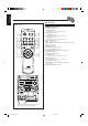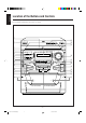 English Remote Control Remote Control TIMER ON/OFF SLEEP w e 1 ACTIVE SOUND BASS EX. MODE PROGRAM REPEAT /SET 2 3 4 5 6 7 8 r t y u i o ; TAPE A/B TUNING MODE FM MODE CD AUX FM/AM TAPE CD DISC SKIP VOL. 9 + FADE MUTING p q VOL. a s – 1 (standby/on) button (9) 2 PROGRAM/SET button (9) 3 REPEAT button (14) 4 CD 0 button (14) Pressing this button also turns on the unit. 5 TAPE A/B button (16) 6 CD 38 button (14) Pressing this button also turns on the unit.
