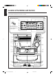 English Location of the Buttons and Controls Become familiar with the buttons and controls on your unit. Powered Rolling Panel h j k i o PANEL OPEN / CLOSE PRESET REC START/STOP TUNING PROGRAM ; l DUBBING REVERSE MODE TIMER /CLOCK a Press PANEL OPEN/ CLOSE to open the panel. To close the panel, press the button again. DEMO CD REC START SET DISPLAY SOUND MODE CANCEL / DECK A/B DISPLAY MODE s d f g ACTIVE BASS EX.