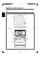 Kaukosäädin Suomi Ks. tarkemmat tiedot suluissa olevilta sivuilta. w STANDBY/ON DISPLAY FM MODE A. STANDBY 1 2 3 4 5 6 7 8 1 SLEEP 2 3 4 5 6 7 8 e r CLOCK /TIMER t 1 2 3 4 5 6 7 8 9 SET 9 OVER CANCEL y 0 CD TAPE FM/AM AUX PROGRAM REPEAT REMAIN 3/8 RANDOM RDS SEARCH RDS MODE UP u i PRESET GROUP 9 VOLUME o DOWN PRESET GROUP SOUND/HBS BEAT CUT REV.