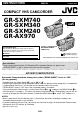 INSTRUCTIONS ENGLISH LYT0880-001D COMPACT VHS CAMCORDER GR-SXM740 GR-SXM340 GR-SXM240 GR-AX970 S-VHS is compatible with GR-SXM740/SXM340/ SXM240 only For Customer Use: Enter below the Model No. and Serial No. which is located on the bottom of the camcorder. Retain this information for future reference. Model No. U Printed in Malaysia 1101MKV UN PJ Serial No. * * COPYRIGHT© 2001 VICTOR COMPANY OF JAPAN, LTD Dear Customer, Thank you for purchasing the JVC Compact VHS camcorder.
