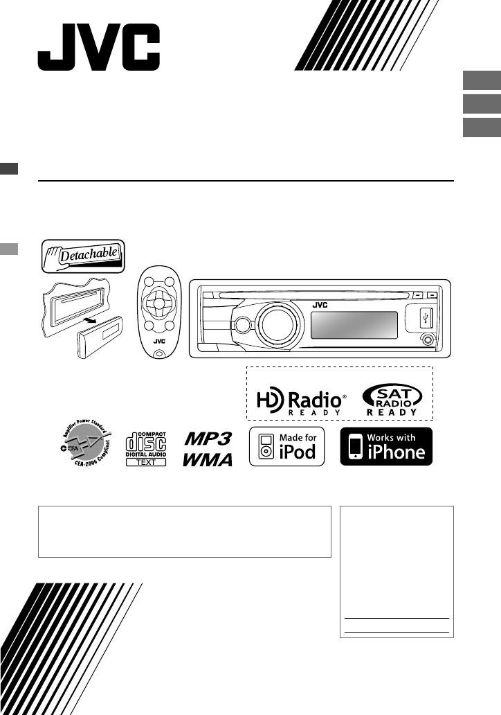 How to read this manual The following icons/symbols are used to indicate: [Hold] Press and hold the button(s) until the desired operation begins. Turn the control dial. Thank you for purchasing a JVC product. Please read all instructions carefully before operation, to ensure your complete understanding and to obtain the best possible performance from the unit. CONTENTS 3 How to read this manual 3 How to attach/detach the control panel Turn the control dial to make a selection, then press to confirm.
