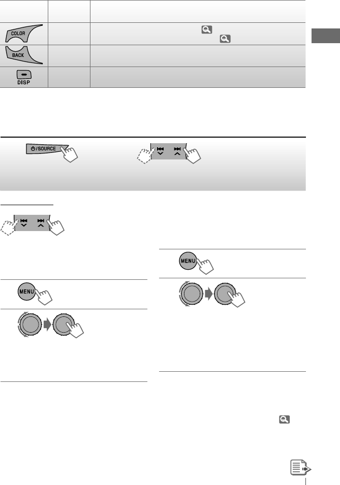 Enters <COLOR SETUP> setting directly ( 30) if pressed and held.