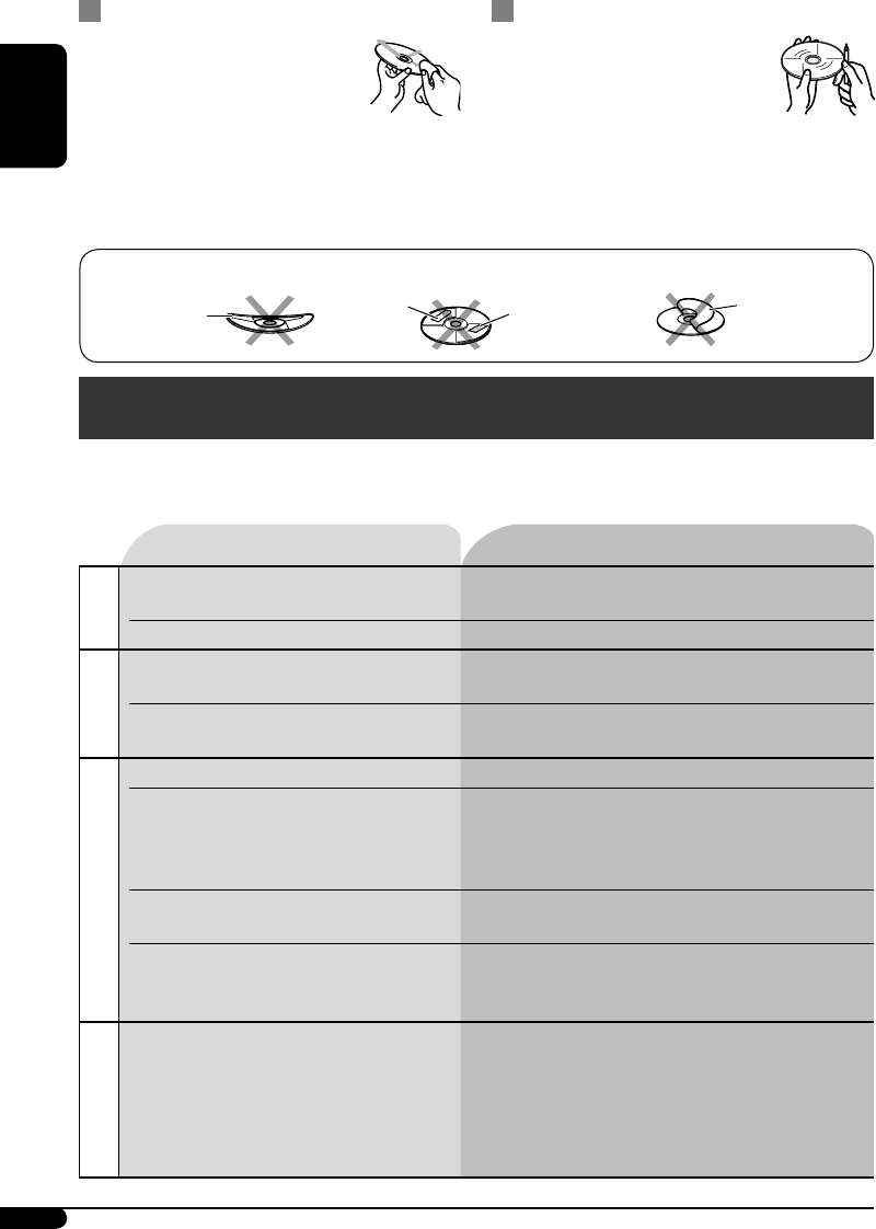• Disc sound is sometimes interrupted. • Stop playback while driving on rough roads.