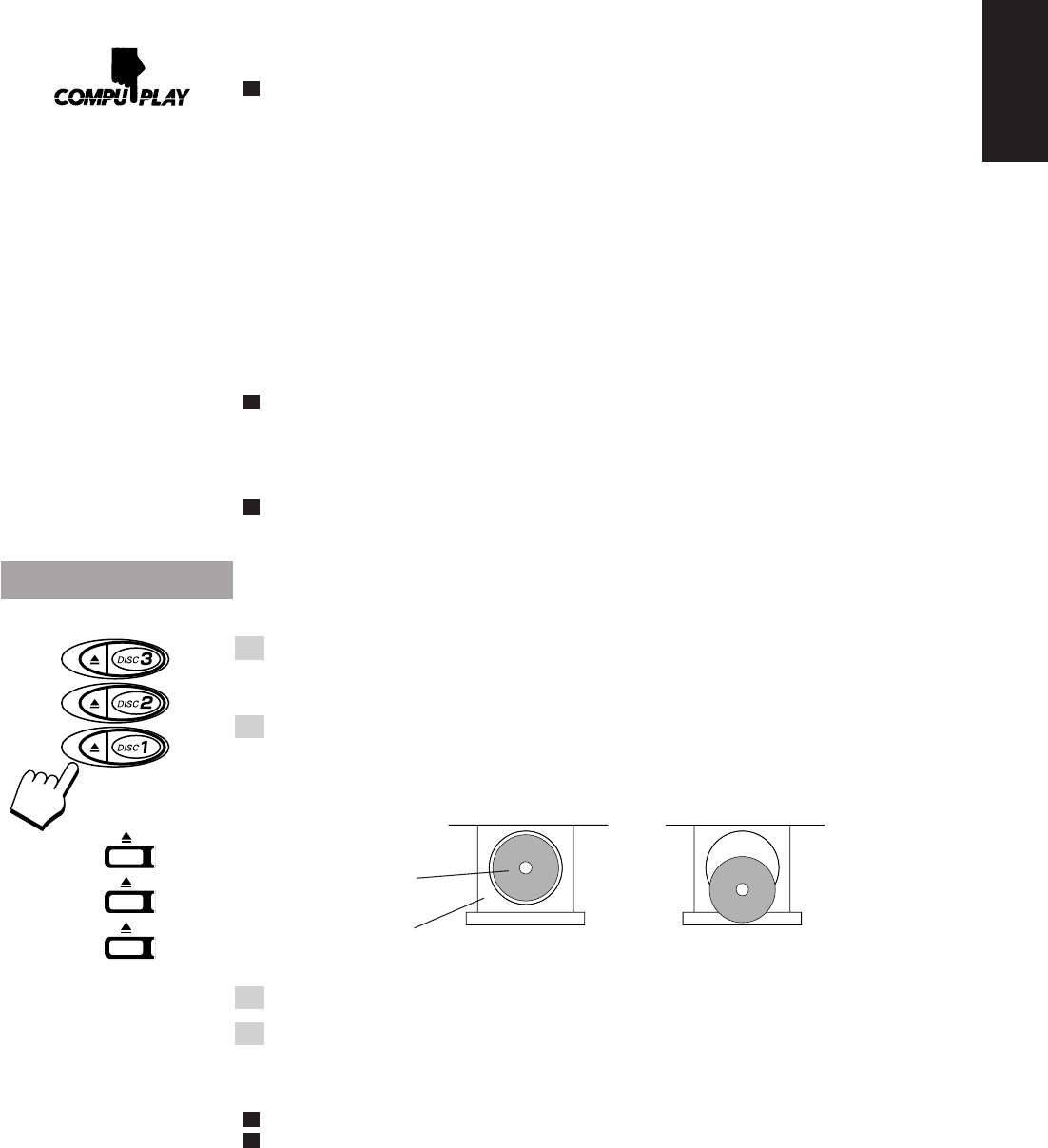 o To put an 8 cm CD into a tray, insert it so that it is aligned with the groove in the tray’s centre.