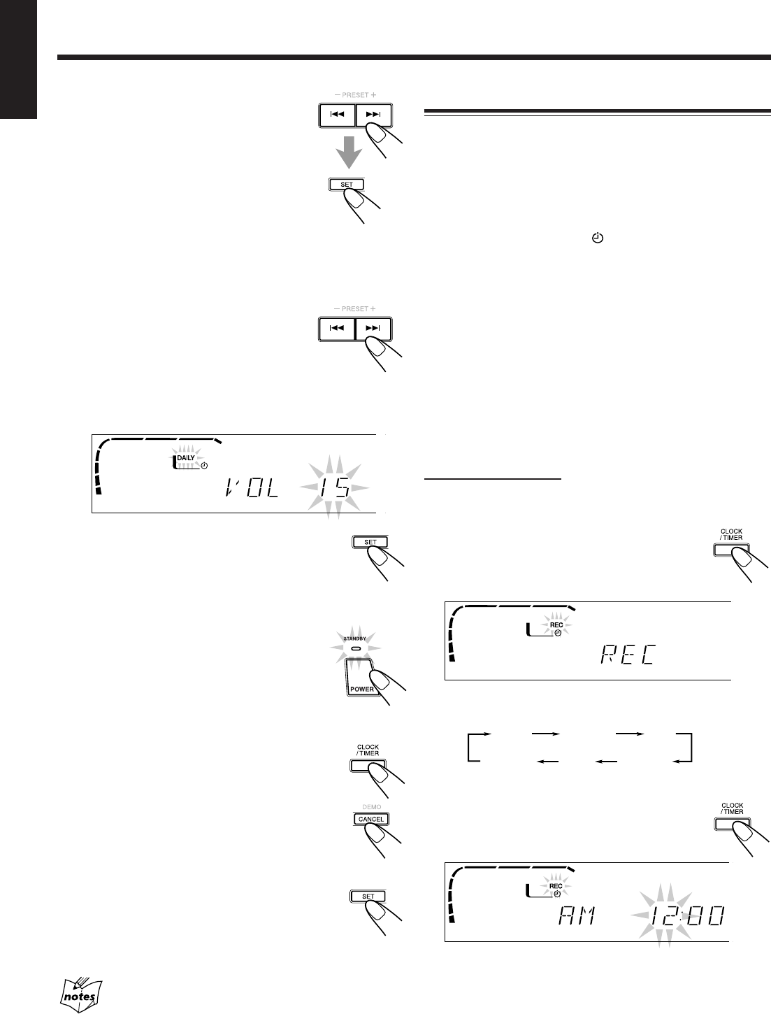 Press CLOCK/TIMER until “REC”