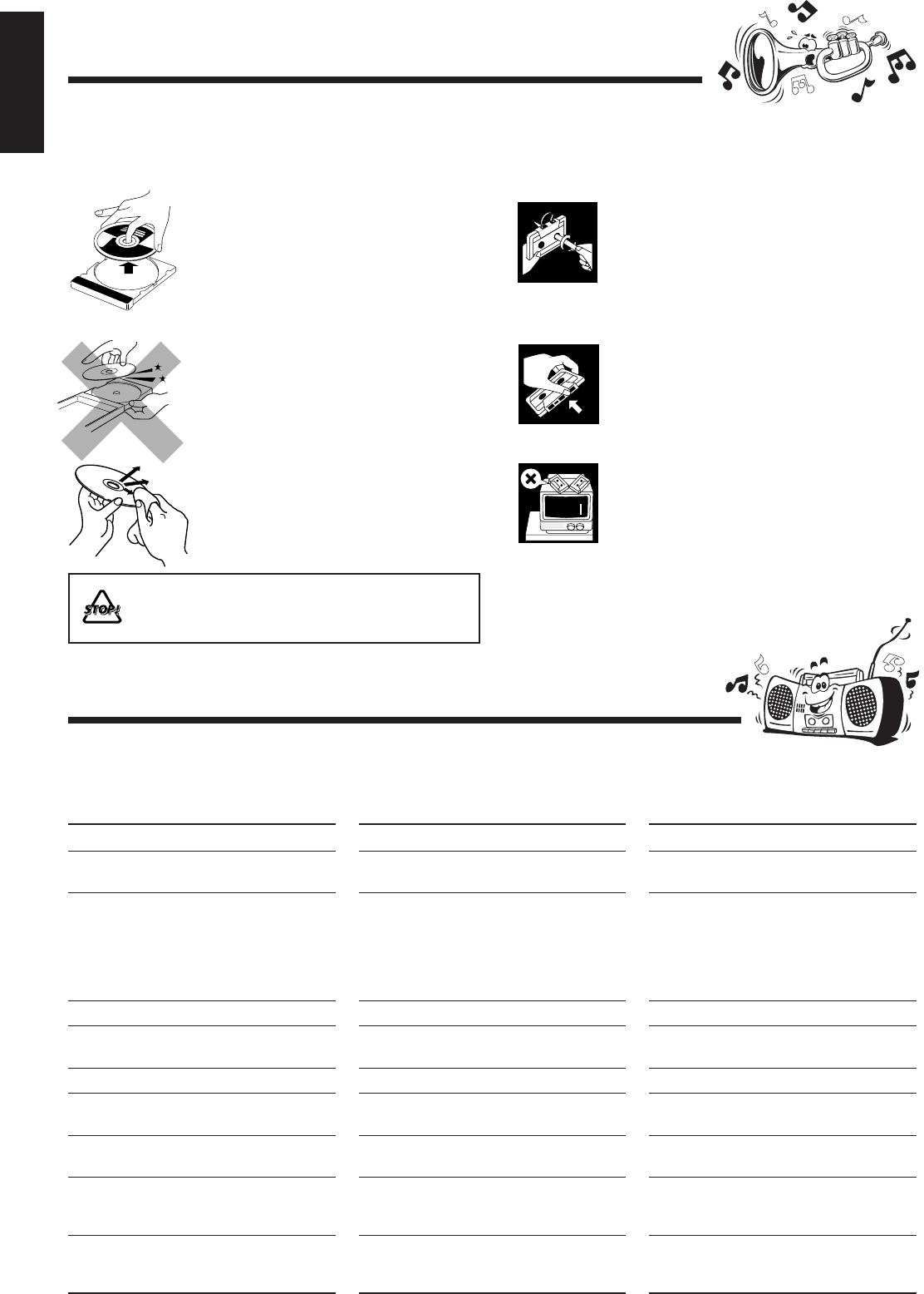 To get the best performance of the unit, keep your discs, tapes, and mechanism clean.