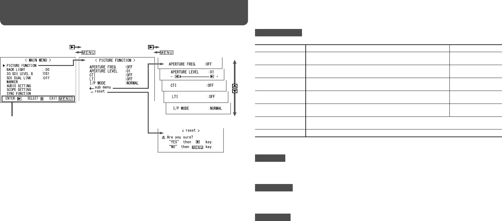 Display the sub menu which enables you to adjust the items of “PICTURE FUNCTION”