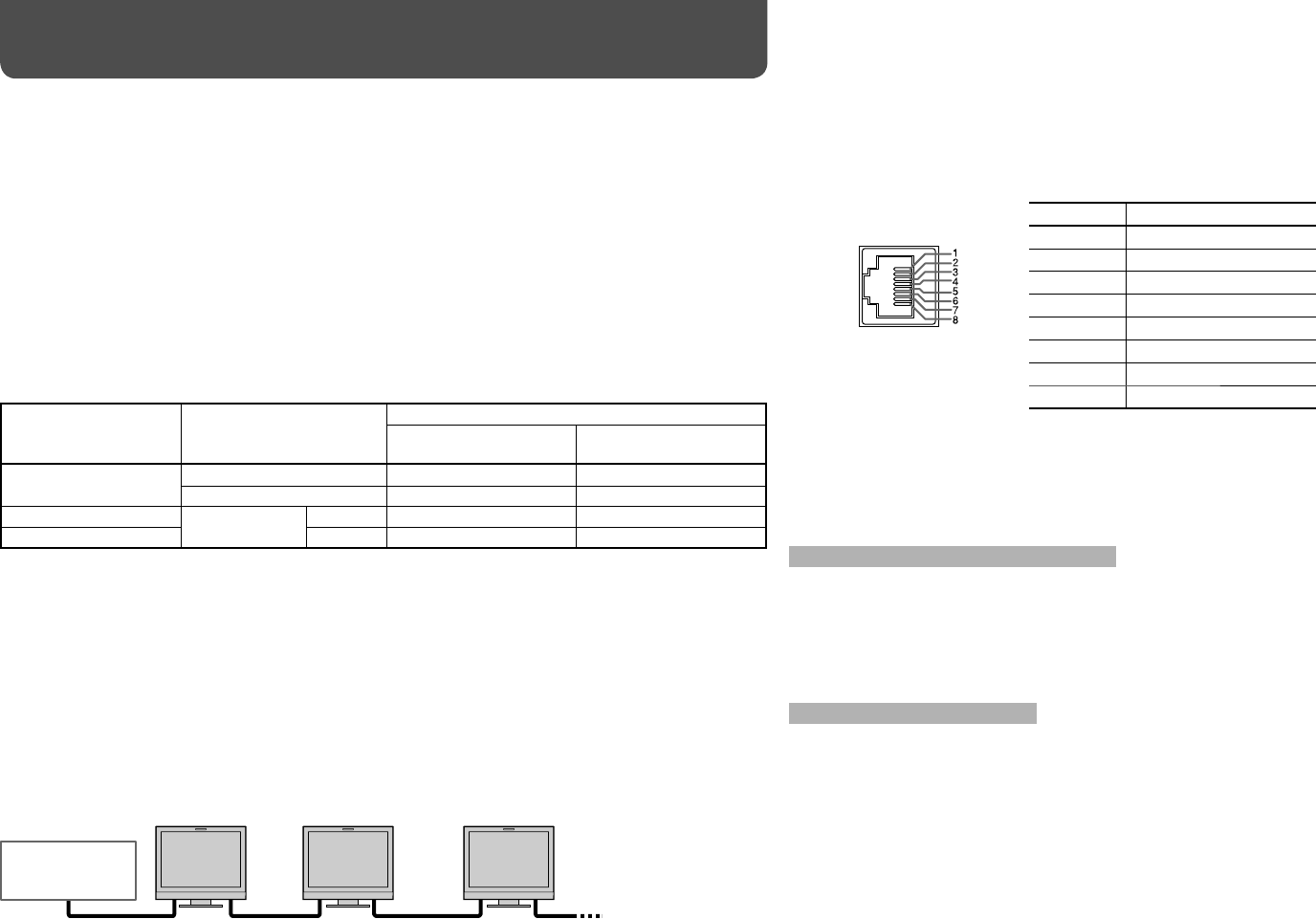 • RS-485 terminals (RJ-45): Controls the monitor with the RS-485 system. (☞ “Using the serial communication”