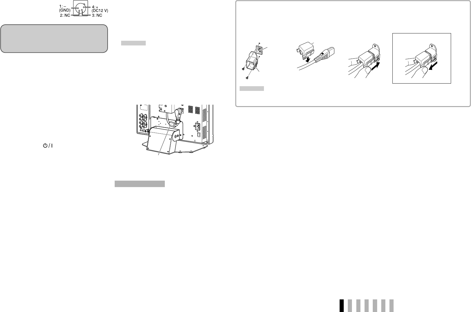 • Attach the provided power cord holder to prevent