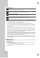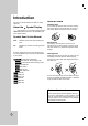 INTRODUCTION About the Symbol Display . . . . . . . . . . . . .6 Symbol Used in this Manual . . . . . . . . . . . . . .6 Notes on Discs . . . . . . . . . . . . . . . . . . . . . . . .6 Moisture Condensation . . . . . . . . . . . . . . . . . .6 Recordable and Playable Discs . . . . . . . . . . .7 Recommended recordable DVD discs . . . . . .7 Playable Discs . . . . . . . . . . . . . . . . . . . . . . . . .8 Regional Code . . . . . . . . . . . . . . . . . . . . . . . . .8 Restrictions on video recording . . .