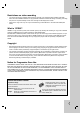 Correction Cause Picture or sound of broadcasting channel is weak or missing. Antenna or cables are loose. Tighten connections or replace cable. Wrong Tuning Band is selected in the Recorder Setup menu. Try [Tuning Band Select] options; see page 20 for details. Can’t play disc recorded on this Recorder on another DVD player. The disc was recorded in Video mode. Finalize the disc; see page 23. Some players will not play even a finalized disc recorded in Video mode. No solution.