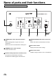 Camera control unit (rear panel) 1 GENLOCK IN/OUT NTSC OUT HD OUT SXGA OUT ~AC IN DV Y GBR (1) PB Y/C (S) GBR (2) PR VBS 2 3 4 1 [AC INPUT] power input connector To input AC120V. 2 Equal-potential connector 3 Cover for extension slot Remove the cover to install an optional device in this slot. 5 6 7 5 [GENLOCK IN/OUT] sync signal input/output Input/output of composite sync signal for external sync. (menu-based switching).