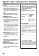 Important product safety instructions (Continued) SERVICING 1. Servicing If your product is not operating correctly or exhibits a marked change in performance and you are unable to restore normal operation by following the detailed procedure in its operating instructions, do not attempt to service it yourself as opening or removing covers may expose you to dangerous voltage or other hazards. Refer all servicing to qualified service personnel.