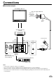 Connections L Connection example DT-V1900CGU (Optional) Endoscope adapter (Optional) Endoscope (Commercially available) MUTING DEGAUSS UNDER SCAN PULSE CROSS COLOR OFF MENU SCREENS CHECK ASPECT AREA MARKER SLOT 1 A VOLUME SLOT 2 B C POWER SLOT 3 D E Camera head F INPUT SELECT SR-W7MAU (Optional) (W-VHS) Connector Cap Video S(Y/C) Out HD (Y, PB, PR) Out GENLOCK IN/OUT NTSC OUT SXGA OUT Front HD OUT ~AC IN DV GBR (1) Y Connector PB CAMERA Y/C (S) GBR (2) PR VBS DZ-VCA3U