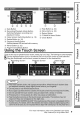 ,m Date Button _ Recording/Playback Mode Button Switches between recording and playback modes. (3_ Index Screen Switching Button (p. 18) (4_ Delete Button (p. 18) _5_Playback Media Button SwitchesbetweenSD cardand built-inmemory. _6_Menu Button (p. 32) q_ Page Forward/Back Button Help Button (p. 32) 1_ (2_ Menu Items (p. 32) (:3)Return Button (:47COMMON Menu Button _5) Close Button _-_ Using the Touch Screen There aretwo waysto operatethetouch screen,namely"tap"and "drag".