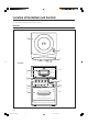English Location of the Buttons and Controls Become familiar with the buttons and controls on your unit. Main Unit Top view 1 COMPACT DIGITAL AUDIO OPEN 2 D A I L Y T I M E R / S N O O Z E 3 Front view q 4 COMPACT DIGITAL AUDIO 5 STANDBY VOLUME 6 – CD 7 TAPE FM/AM + AUX w #/8 PHONES DOWN 4 UP ¢ 7 AUX REC 8 e r 9 p PUSH OPEN A U T O R E V E R S E t C O M PAC T C O M P O N E N T S Y S T E M 3 01-05_FS-H350&H300[C]2.p65 3 04.3.