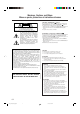 Warnings, Cautions and Others Mises en garde, précautions et indications diverses CAUTION—STANDBY/ON CAUTION RISK OF ELECTRIC SHOCK DO NOT OPEN CAUTION: TO REDUCE THE RISK OF ELECTRIC SHOCK, DO NOT REMOVE COVER (OR BACK). NO USER SERVICEABLE PARTS INSIDE. REFER SERVICING TO QUALIFIED SERVICE PERSONNEL.