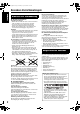 FS-XA1[B]-06.fm Page 41 Monday, April 24, 2006 11:10 AM Oplossen van problemen Controleer in geval van problemen eerst de volgende punten alvorens een JVC onderhoudscentrum te raadplegen. Stroom 7 Stroom wordt niet ingeschakeld. • Het netsnoer is niet aangesloten op het hoofdtoestel of een stopcontact. → Sluit het netsnoer goed aan (bladzijde 11). Bediening 7 Toetsen werken niet. • Bepaalde bedieningen kunnen mogelijk niet voor sommige discs worden gebruikt. 7 Afstandsbediening werkt niet.