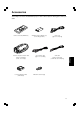 Accessoires Les accessoires suivants sont fournis avec ce projecteur. Vérifiez s’ils sont bien tous présents. Si l’un de ces accessoires manquait, veuillez contacter votre revendeur. Câble de connexion à l’ordinateur personnel [env. 2 m (6,56 pieds)] (D-sub, 15 broches sur 3 rangées) Adaptateur de conversion pour Mac (pour Macintosh) Piles sèches AAA/R03 (×2) (pour vérifier le fonctionnement) Câble de connexion audio/vidéo [env. 1,5 m (4,92 pieds)] Cordon d’alimentation [env.
