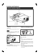 Controls and Features (cont.) Bottom Surface r t y u r Air intake area (filter) Air is taken in through this area to cool the light-source lamp. If this area is blocked or if something that obstructs taking in or exhausting air is placed around the projector, heat may build up inside and could cause a fire. For details, refer to “Precautions for Installation” on page 15. CAUTIONS • Be careful as paper, cloth or soft cushion could be drawn in if placed nearby.