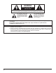 WARNING RISK OF ELECTRIC SHOCK DO NOT OPEN WARNING: To reduce the risk of electric shock, do not remove cover or back. No user-serviceable parts inside. Refer servicing to qualified service personnel. The lightning flash with arrow-head within a triangle is intended to tell the user that parts inside the product are a risk of electric shock to persons.
