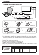 Connections Component/RGB Input connection Component signals (Y, PB, PR) connection RCA-BNC adaptor plug (DVD Player) Y Y, PB, PR PB 3×RCA video cables PR L AUDIO R 2×RCA audio cables R L AUDIO VD HD PR/CR/R PB/CB/B Y/G COMPONENT/RGB IN Notes: (1) Change the “Component/RGB-in” setting in the “Setup” menu to “Component”. (see page 30) (2) Additional equipment, cables and adaptor plugs shown are not supplied with this set.