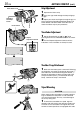 EN GETTING STARTED (cont.) Grip Adjustment Power Zoom Lever 1 Separate the Velcro strip. 2 Pass your right hand through the loop and grasp the grip. 3 Adjust your thumb and fingers through the grip, to Recording Start/Stop button easily operate the Recording Start/Stop button and Power Switch and Power Zoom Lever. Be sure to fasten the Velcro strip to your preference.