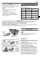 EN 55 LCD Monitor Main Unit 1. To prevent damage to the LCD monitor, DO NOT . . . ... push it strongly or apply any shocks. ... place the camcorder with the LCD monitor on the bottom. 2. To prolong service life . . . ... avoid rubbing it with coarse cloth. 3. Be aware of the following phenomena for LCD monitor use. These are not malfunctions: • While using the camcorder, the surface around the LCD monitor and/or the back of the LCD monitor may heat up.
