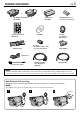 PROVIDED ACCESSORIES EN 5 or AC Adapter AP-V10EG or AP-V12EG Battery Pack BN-V408U AAA (R03) Battery x 2 (for remote control unit) CD-ROM Remote Control Unit RM-V717U Lens Cap (See below for attachment) Core Filter (for optional S-Video cable 墌 pg. 6 for attachment) Shoulder Strap Cable Adapter Power Cord Audio/Video Cable (ø3.