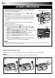 GETTING STARTED (cont.) EN Erase protection tab* Loading/Unloading A Cassette The camcorder needs to be powered up to load or eject a cassette. Make sure the window side is facing out. PUSH HERE Cassette holder Cassette holder cover OPEN/EJECT Switch * To Protect Valuable Recordings . . . .... slide the erase protection tab on the back of the tape in the direction of “SAVE”. This prevents the tape from being recorded over. To record on this tape, slide the tab back to “REC” before loading it.