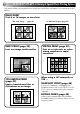 DIFFERENT TYPES OF PRINTING (cont.) Editing Index When you edit a source tape using Random Assemble Editing (available on selected JVC camcorders and VCRs), you can print out the scenes at the Edit-In and Edit-Out points you’ve registered. This allows you to make an editing index. POWER TITLE SOURCE MEMORY FRAME MASKING STABILIZER PRINT MENU 4 5 OK FORMAT MODE 7 3 CANCEL Preparation Perform preparation referring to page 19.