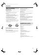 TH-C3C6[UJ].book Page 2 Monday, April 4, 2005 6:56 PM Introduction 7 Safety precautions Notes on handling Avoid moisture, water and dust Do not place the system in moist or dusty places. 7 Important cautions Installation of the system • Select a place which is level, dry and neither too hot nor too cold; between 5°C and 35°C. • Leave sufficient distance between the system and the TV. • Do not use the system in a place subject to vibration.