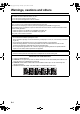 NX-F30[U]-gpage.fm Page 1 Monday, April 6, 2009 10:48 PM Warnings, cautions and others CAUTION To reduce the risk of electrical shocks, fire, etc.: 1. Do not remove screws, covers or cabinet. 2. Do not expose this appliance to rain or moisture. CAUTION The F button in any position does not disconnect the mains line. Disconnect the mains plug to shut the power off completely (the STANDBY lamp goes off).