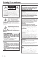 Safety Precautions CAUTION . RISK OF ELECTRIC SHOCK DO NOT OPEN CAUTION: TO REDUCE THE RISK OF ELECTRIC SHOCK, DO NOT REMOVE COVER (OR BACK). NO USER-SERVICEABLE PARTS INSIDE. REFER SERVICING TO QUALIFIED SERVICE PERSONNEL. The lightning flash with arrowhead symbol, within an equilateral triangle, is intended to alert the user to the presence of uninsulated "dangerous voltage" within the product's enclosure that may be of sufficient magnitude to constitute a risk of electric shock to persons.