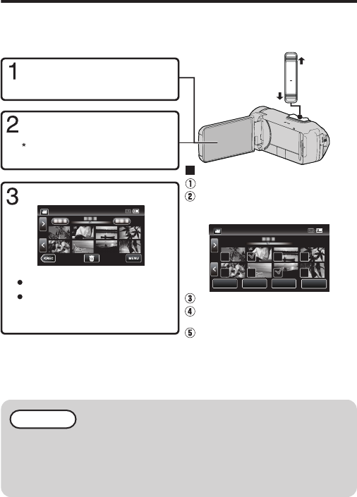 Select and play back the recorded videos or still images from an index screen (thumbnail