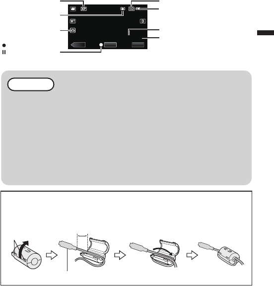 Attach the core filter to the AV Cable as shown in the illustration. The core filter