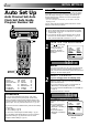 EN 5 2 1 2 3 4 5 6 7 8 9 0 3 MENU 1 PERFORM AUTO CHANNEL SET Press PUSH JOG%fi to move the highlight bar (pointer) to the language of your choice , then press OK to initiate Auto Channel Set. DANSK SUOMI NORSK SVENSKA NEDERLANDS CASTELLANO ITALIANO FRANCAIS DEUTSCH ENGLISH [ 5∞] = [MENU] : EXIT ● The Auto Set screen appears, and remains on screen while the recorder searches for AUTO SET receivable stations.