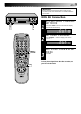 EN SPECIAL FEATURES Your remote control can operate the basic functions of your TV set. In addition to JVC TVs, other manufacturer’s TVs can also be controlled by setting the appropriate switch on the remote control. Before you start . . . ● Turn on the TV using its remote control. ● Set the remote control’s TV/SAT./VCR switch to TV. TV MultiBrand Remote Control 1 DISPLAY 2 NUMBER 1 2 3 4 5 6 7 8 9 2 0 4 TV PROG. TV/SAT./VCR CR /V 3 1 Refer to the chart below.