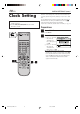 EN INITIAL SETTINGS (cont.) Clock Setting ● Turn on the VCR and the TV, and select the AV mode on the TV. ● Set the VCR/TV/CABLE/DBS selector on the Remote to “VCR”. Perform clock setting only if the clock has not been set correctly by the Plug & Play setting or if you use a cable box. Access the Clock Set screen to perform the Semiauto or Manual Clock Set. Each procedure starts from step 3 after preparation steps below are finished. If you use a cable box, set the clock manually. (墌 pg.
