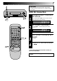 Tape Position Indicator q 1 RE FF W ¡ The tape position indicator appears on screen when, from the Stop mode, you press FF, REW or perform an Index Search. The position of “5” in relation to “0” (beginning) or “+” (end) shows you where you are on the tape. ”O.S.D.” (Z pg. 32) must be set to “ON”, or the indicator will not appear. 3 0 + + + 1:23:45 REMAIN 2:35 Beginning End NOTE: Depending on the type of tape used, there may be times when the indication is not correct.