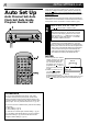 Auto Clock Set 2 4 3 4 5 6 7/ 8 9 0 2 3 ¶ 7 4 1 MENU 3 AUTO CLOCK PLEASE WAIT JUST CLOCK: ON TV PR. : 1 ● If "TV PR." isn't set to the preset position on which Auto Clock Set data is received, "ERROR" appears, and then the screen from step 3 reappears. To set "TV PR.", press OK to place the cursor next to it, then cycle through the numbers by pressing PUSH JOG%fi until the number representing the position in which the station transmitting clock setting data (BBC1, BBC2, etc.