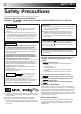 SAFETY FIRST Safety Precautions The rating plate and the safety caution are on the rear of the unit. WARNING: DANGEROUS VOLTAGE INSIDE WARNING: TO PREVENT FIRE OR SHOCK HAZARD, DO NOT EXPOSE THIS UNIT TO RAIN OR MOISTURE. CAUTION IMPORTANT n Please read the various precautions on p. 2 – 3 of this instruction manual before installing or operating the recorder.